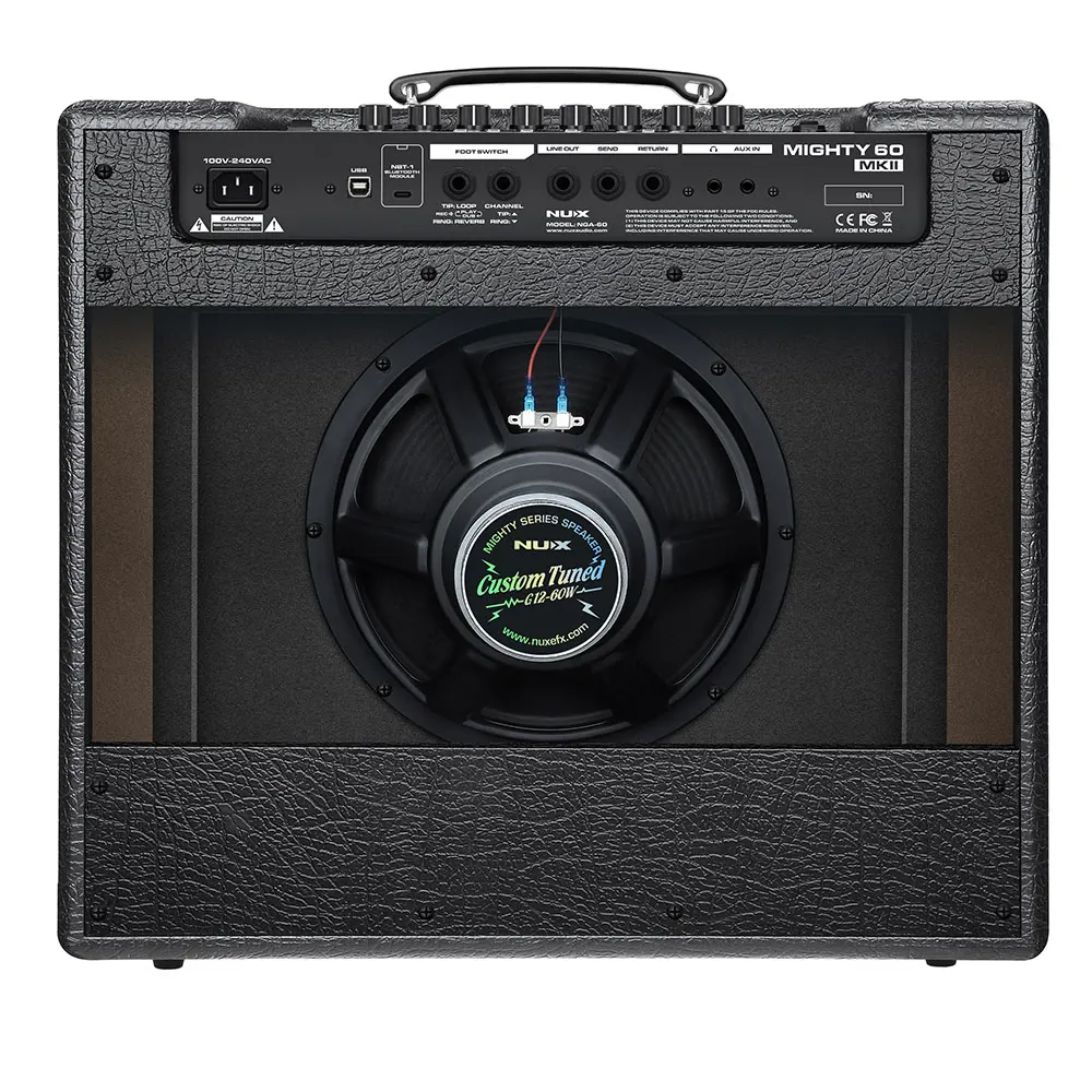 NUX Mighty 60 MKII je resna izbira za kitariste, ki hočejo en ojačevalec za vse: tiho igranje doma, vaje s bendom in manjše do srednje nastope. Z nastavljivo izhodno močjo (0,5 W / 5 W / 60 W) se brez težav prilagodi prostoru in glasnosti, 12-palčni NUX Custom Tuned zvočnik pa poskrbi za poln, “odrasel” zvok, ki ga pri manjših combo ojačevalcih pogosto pogrešaš.