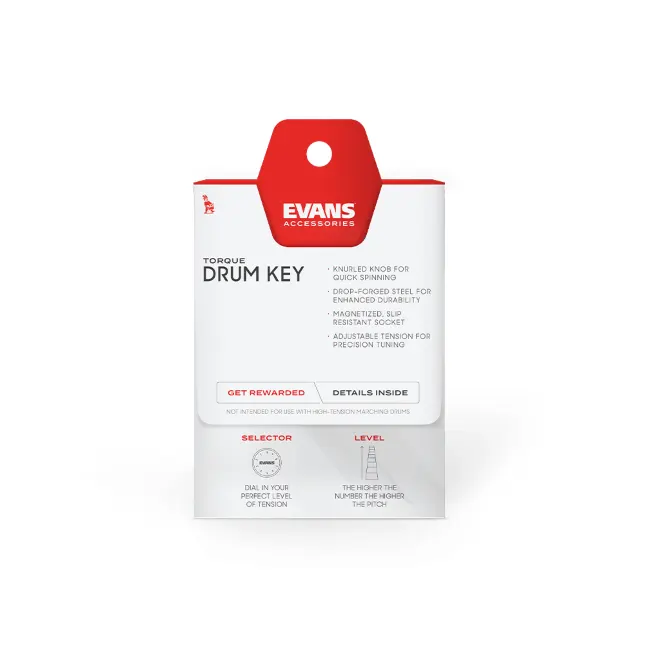 EVANS Torque Key je profesionalni ključ za uglaševanje bobnov, ki omogoča izjemno natančno nastavitev napetosti opne. Nastavljiv moment zategovanja zagotavlja enakomerno uglaševanje vseh vijakov, magnetna glava pa preprečuje zdrs in omogoča hitro delo. Ergonomsko oblikovan ročaj zagotavlja udoben oprijem in zanesljivo uporabo tako v studiu kot na odru. Ključ je bil razvit v sodelovanju z Nedom Steinbergerjem in izdelan po najvišjih industrijskih standardih kakovosti.